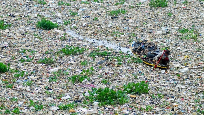 Le plus long fleuve de l’île de Java est également l’un des fleuves les plus pollués au monde. Les usines libèrent directement leurs rejets chimiques et toxiques, et les habitants des rives déversent leurs détritus dans ce cloaque innommable. Véritable égout à ciel ouvert, des tonnes d’immondices croupissent et recouvrent les eaux tel un tapis nauséabond et empoisonné. Certains l’ont même surnommé, le fleuve de plastique. Des pêcheurs traditionnels se sont reconvertis en pêcheurs de plastiques, activité plus lucrative, mais tellement préjudiciable à leur santé.