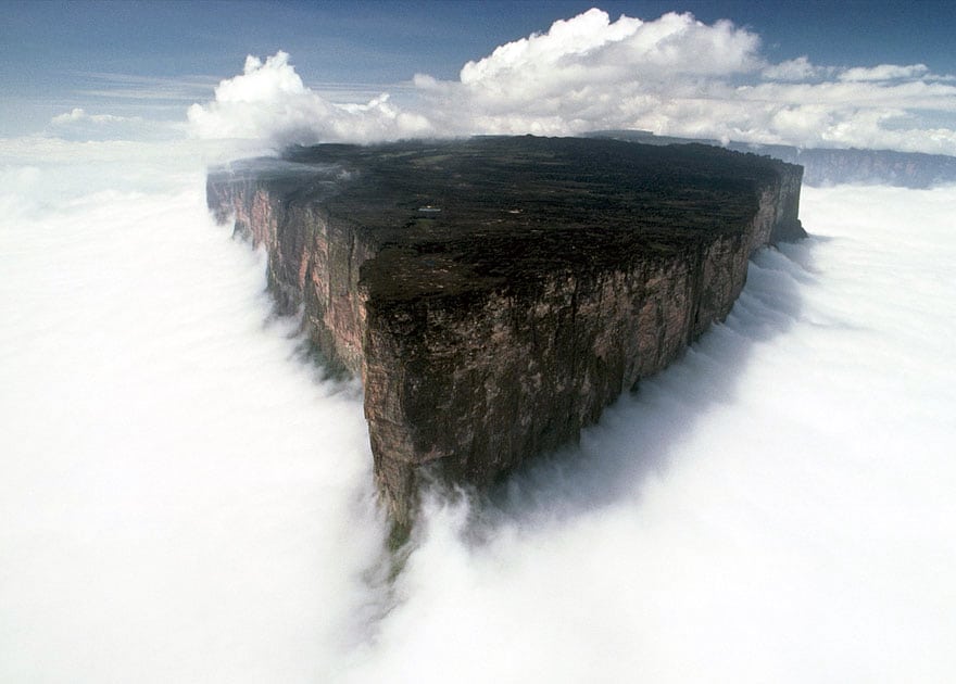 Le mont Roraima est une montagne d’Amérique du Sud partagée entre le Brésil, la Guyane et le Venezuela. I Délimité par des falaises d’environ 1 000 mètres de hauteur, son plateau sommital présente un environnement totalement différent de la forêt tropicale humide et de la savane qui s’étendent à ses pieds.