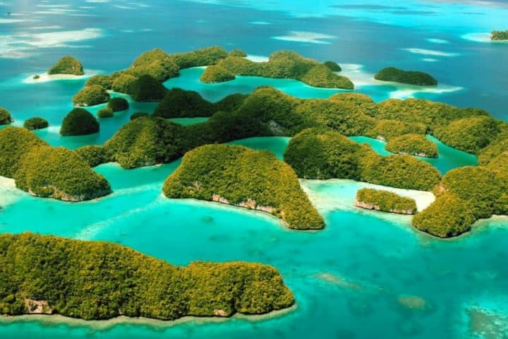 Les îles Chelbacheb sont des anciens récifs coralliens qui ont fait surface pour former 445 petites îles de calcaire situées dans la lagune sud des Palaos, dans l’océan Pacifique. Elles ont la forme de champignons, semblant dériver au cœur d’un lagon aux couleurs turquoise. Ces îles sont pour la plupart désertes, et abritent de somptueuses plages de sable fin, une végétation exotique et de nombreux lacs, dont celui aux Méduses, où l’on peut nager parmi une nuée de méduses inoffensives. On a découvert sur cet archipel des vestiges de villages, ainsi que des sites funéraires et d’art rupestre qui prouvent l’existence d’une ancienne communauté insulaire. Ce paradis intact a été classé Patrimoine mondial de l’Unesco en 2012.