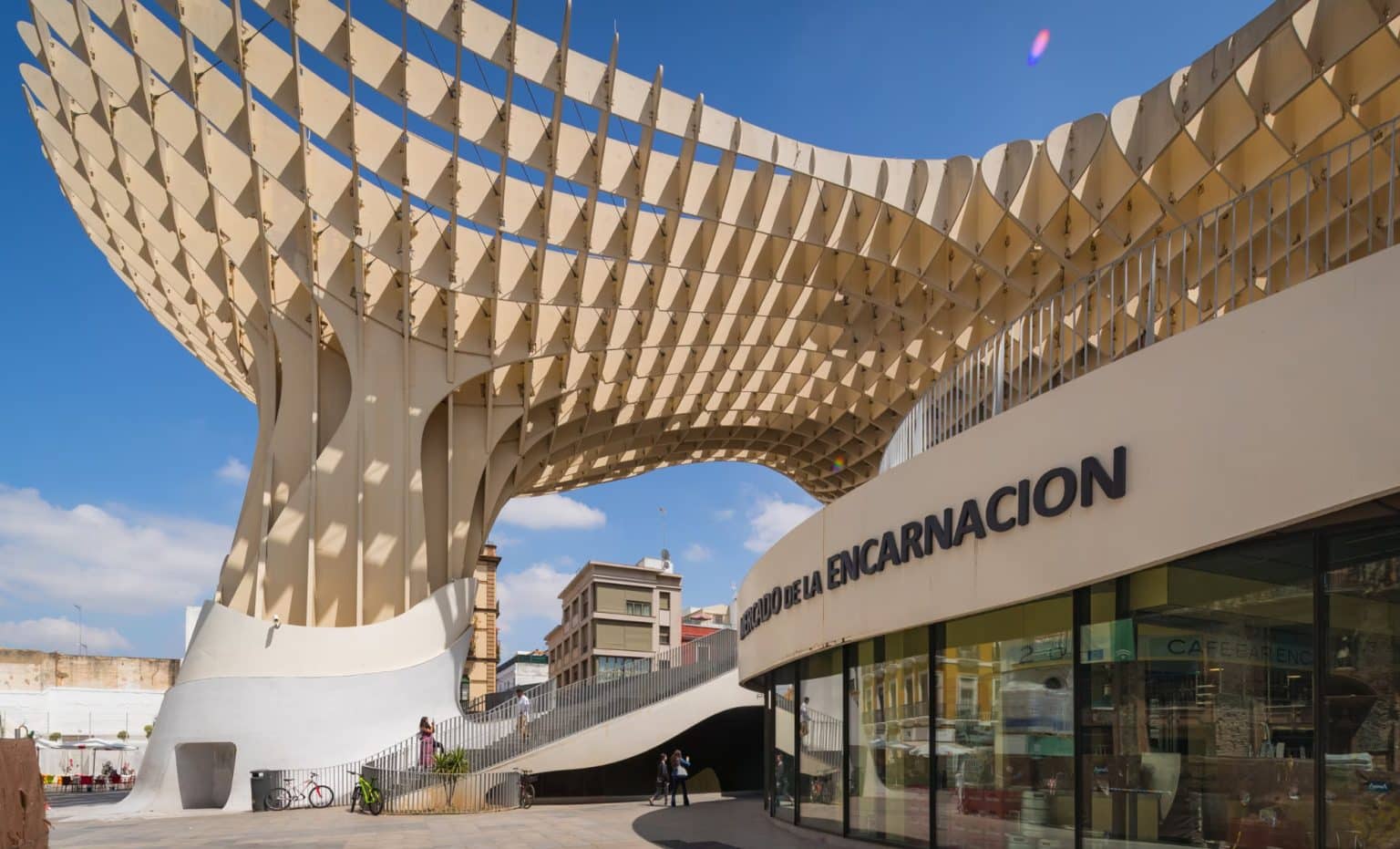 Direction la Plaza de la Encarnación, où vous pourrez découvrir le marché éponyme caché sous le majestueux Metropol Parasol, située juste en face. Cette structure impressionnante en bois, véritable joyau de Séville, offre aux visiteurs un lieu où ils peuvent déambuler parmi une myriade de stands, proposant des produits locaux dans une atmosphère traditionnelle et vibrante, avec en prime une protection solaire.